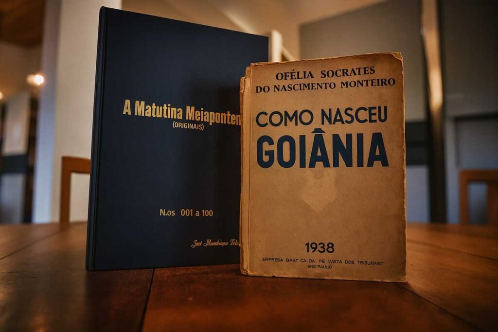 Prrmeiras edições do Jornal A Matutina Meiapontese dos ano de 1830 e a primeira edição do livro Como Nasceu Goiânia de 1938